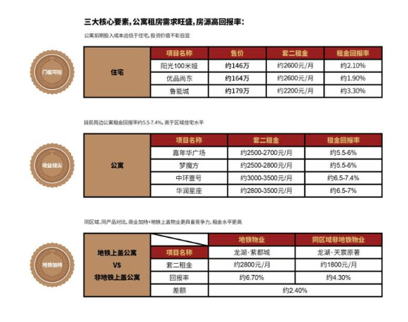 项目位于太古里、万象城、成都东坐三大商圈交汇的核芯地带,使得现实利用单价极具合作力。区域租赁市场需求兴旺。同类型项目房钱报答率可达7%以上