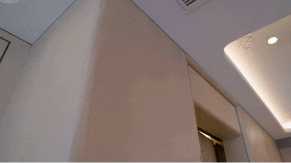 灯光仿佛空间的魂灵笔触,镜柜取门楣到顶的设想,